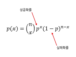 그리고 x값은 0과 1만 존재하는데, 그것은 성공과 실패 이렇게 2가지의 상황만 나오기 때문이다. 그래서 x에 실패했을 때는 0을 대입하고, 성공했을 때는 1을 대입한다. 왜냐하면 0제곱을 하면 “원래 있던 존재 자체가 없어지므로” 실패했을 때는 0이고, 반대로 1제곱을 하면 “원래 있던 존재 자체가 그대로 있기에” 성공했을 때는 1이다.