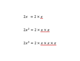 이전 글에서 문자 대신에 숫자를 넣는 것을 대입이라고 부른다 했었는데, 문자에 숫자를 대입할 때, 곱셈 기호가 생략된 경우에는, 다시 곱셈 기호를 살려줘야 한다. 그런데 나눗셈 기호는 꼭 살려줘야 하는 것이 아니라서, 해당 상황을 파악한 후 다시 살릴지 아니면 그대로 둘지를 판단하면 된다. 그리고 음수를 대입할 때는, 괄호를 사용하는 것이 좋다.(물론 괄호가 필요 없는 경우도 있다)